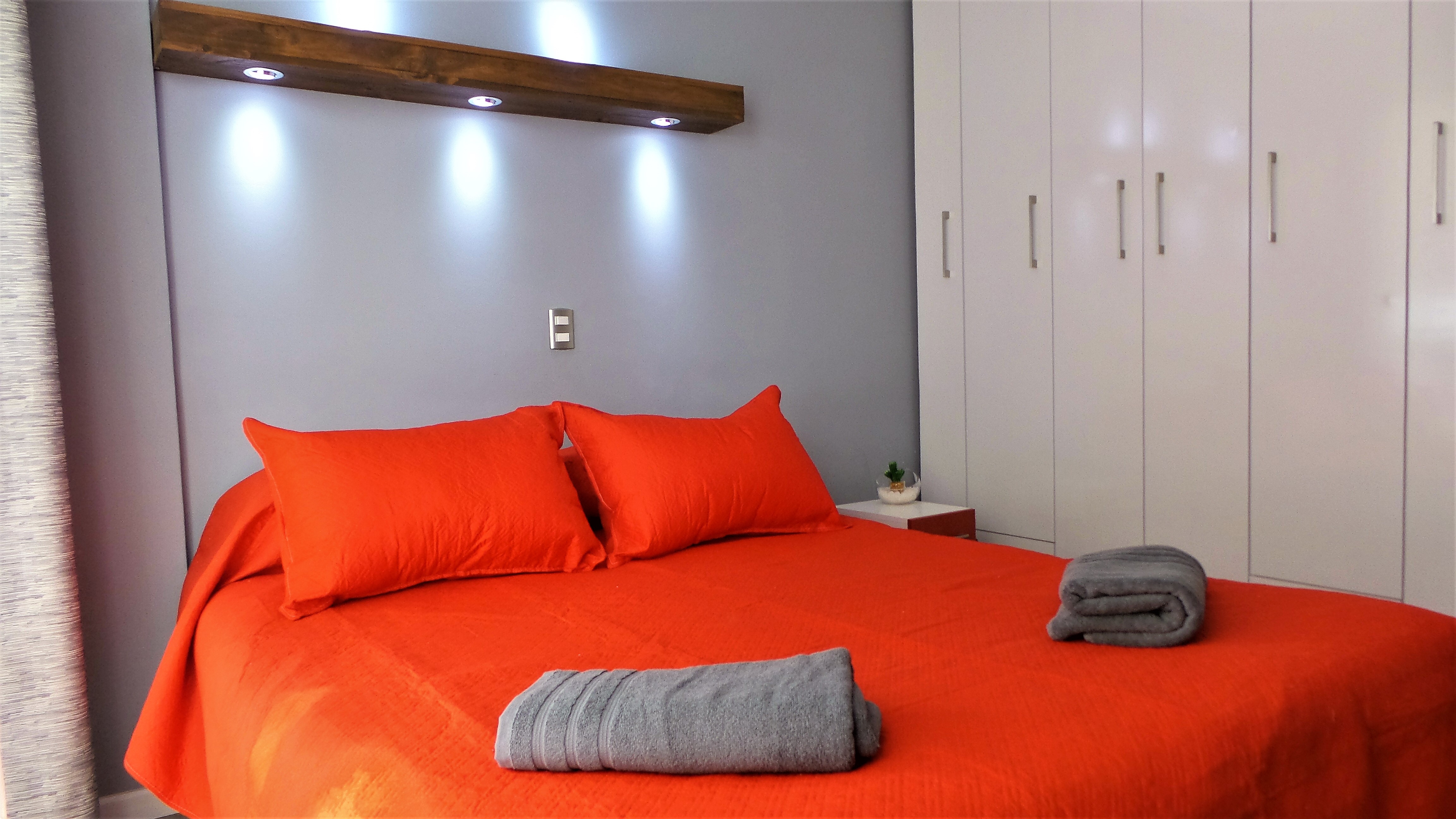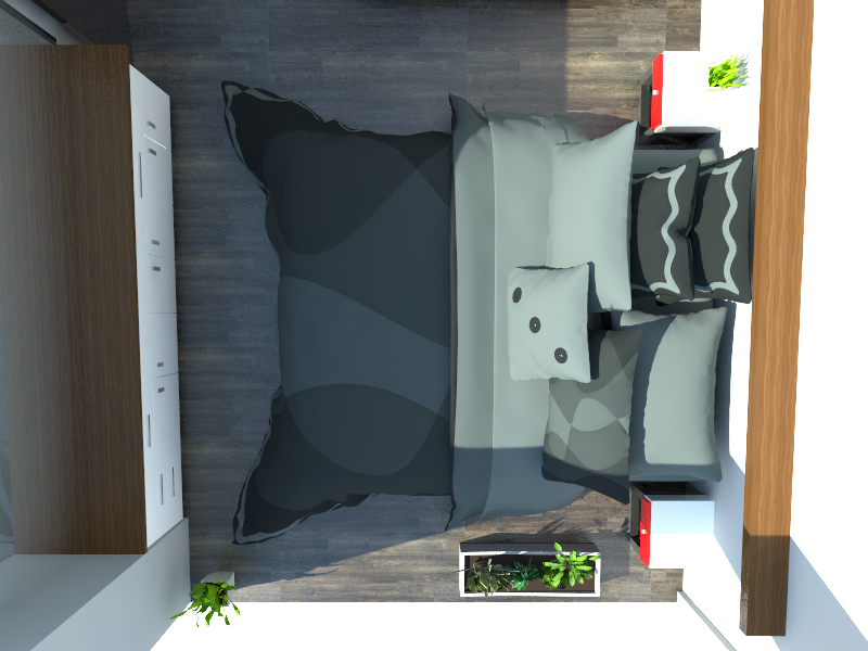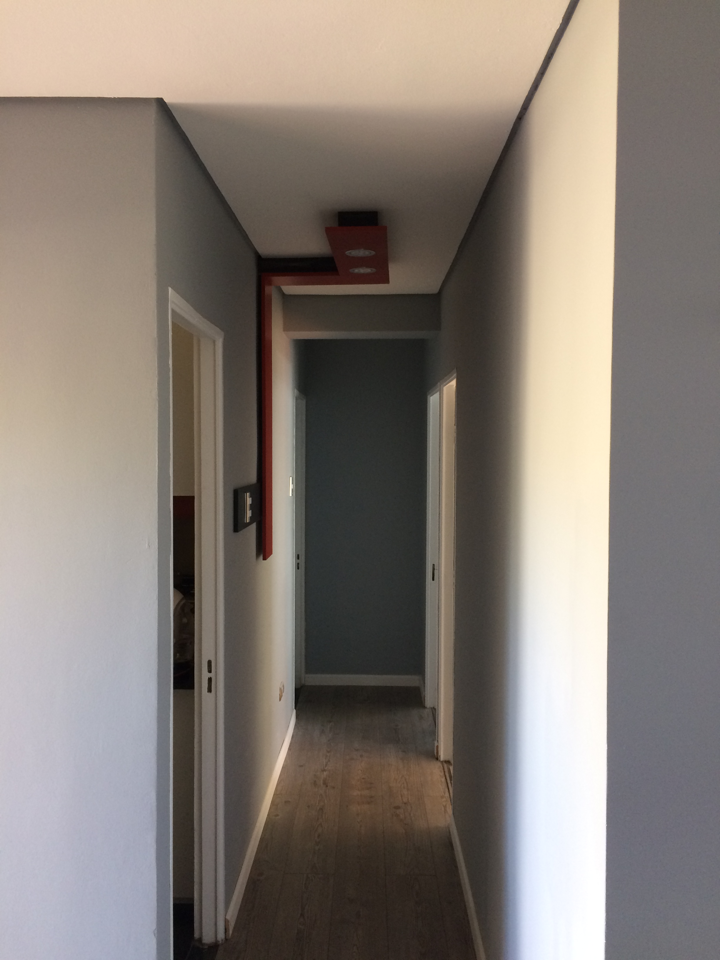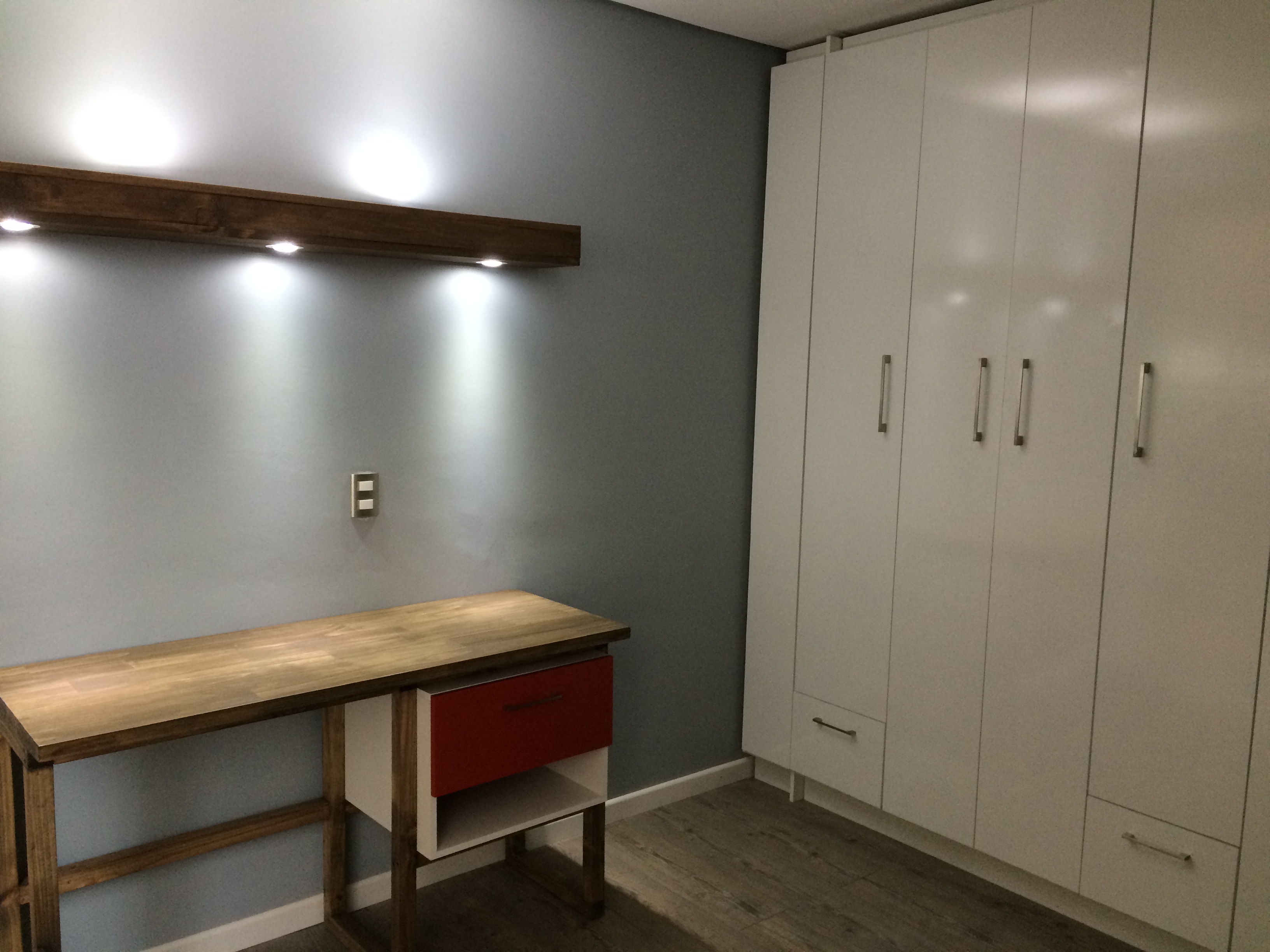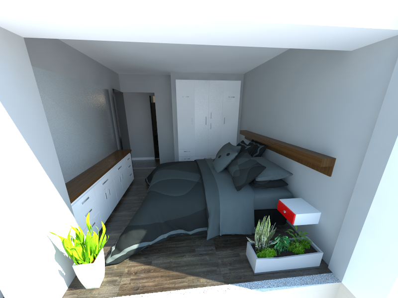 La pareja mandante, solicita un diseño general sobrio y minimalista, por lo cual se decide por colores neutrales -matices de grises- que funcionen de plataforma sobre situar un color protagonista y una textura natural que lo asista. Este sería un rojo intenso y la madera envejecida.