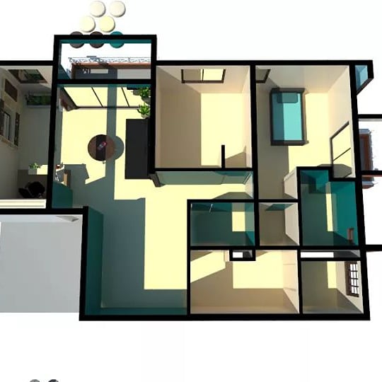 Se procede al levantamiento del departamento, para modelar el proyecto en 3D, lo que nos permite probar paletas de colores, y la ductilidad del mobiliario a proponer. Situar los artefactos y aplicar las texturas elegidas por el mandante para el mobiliario.