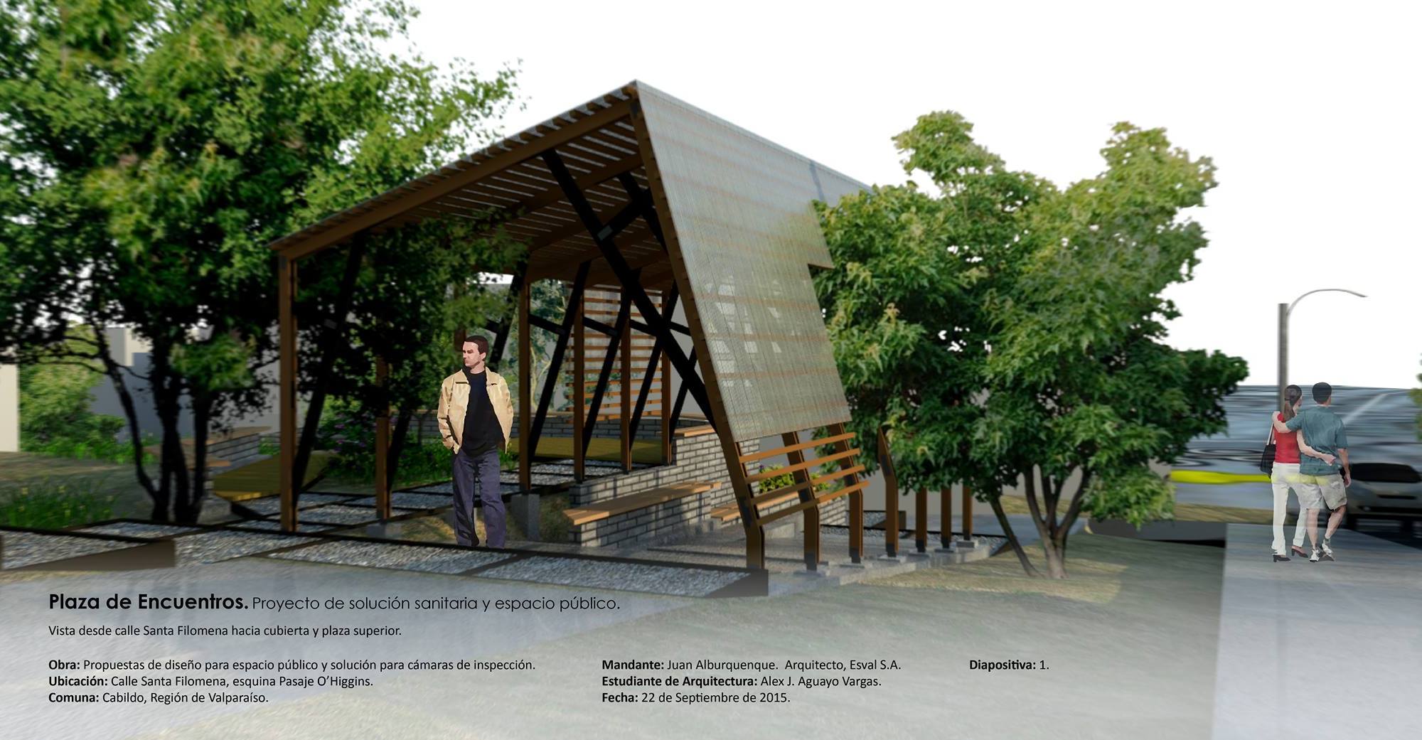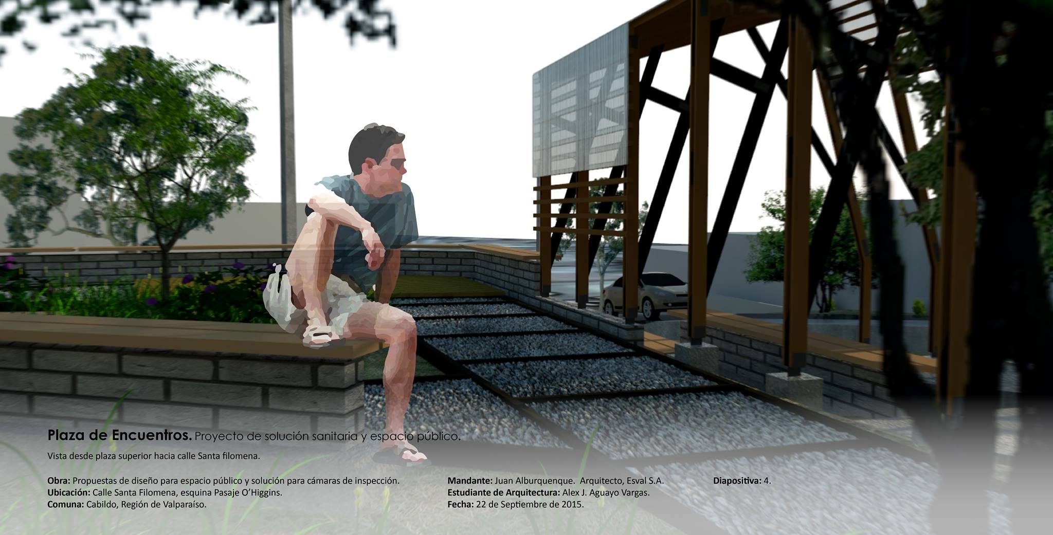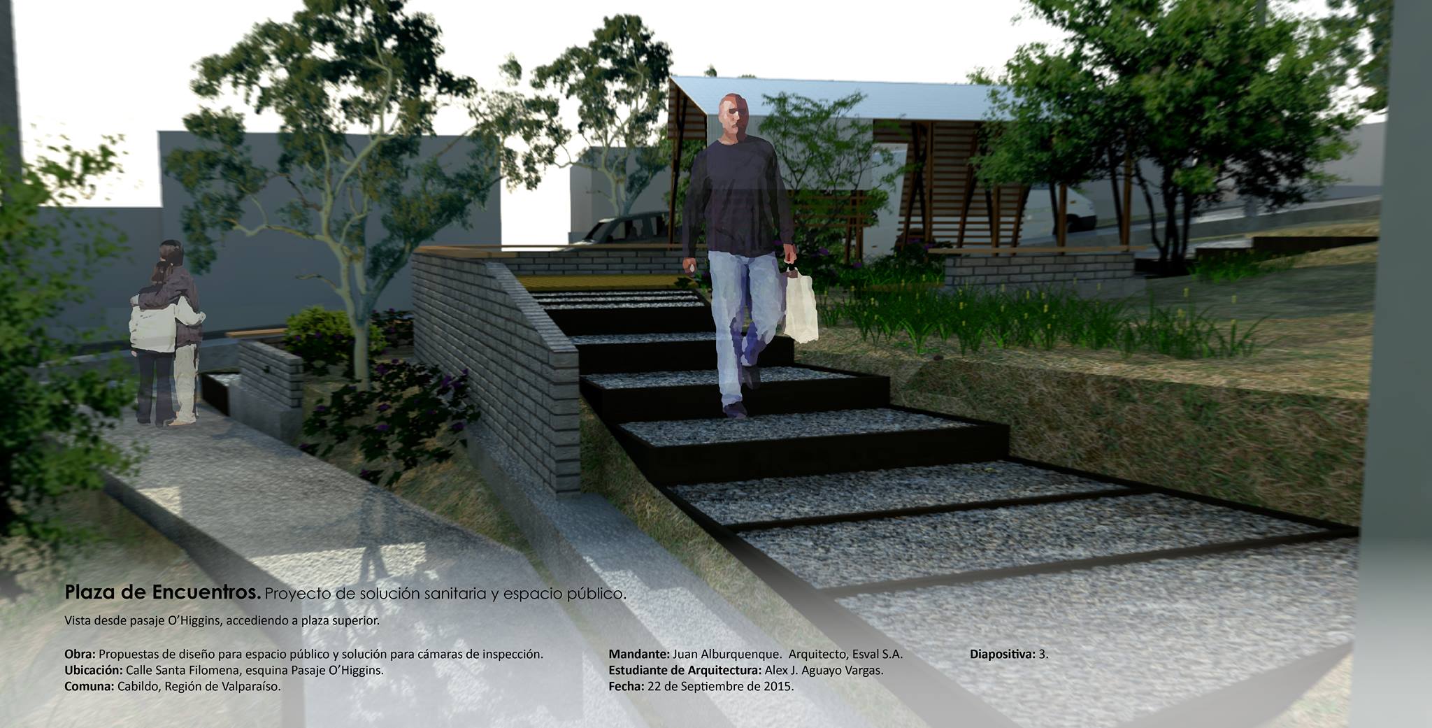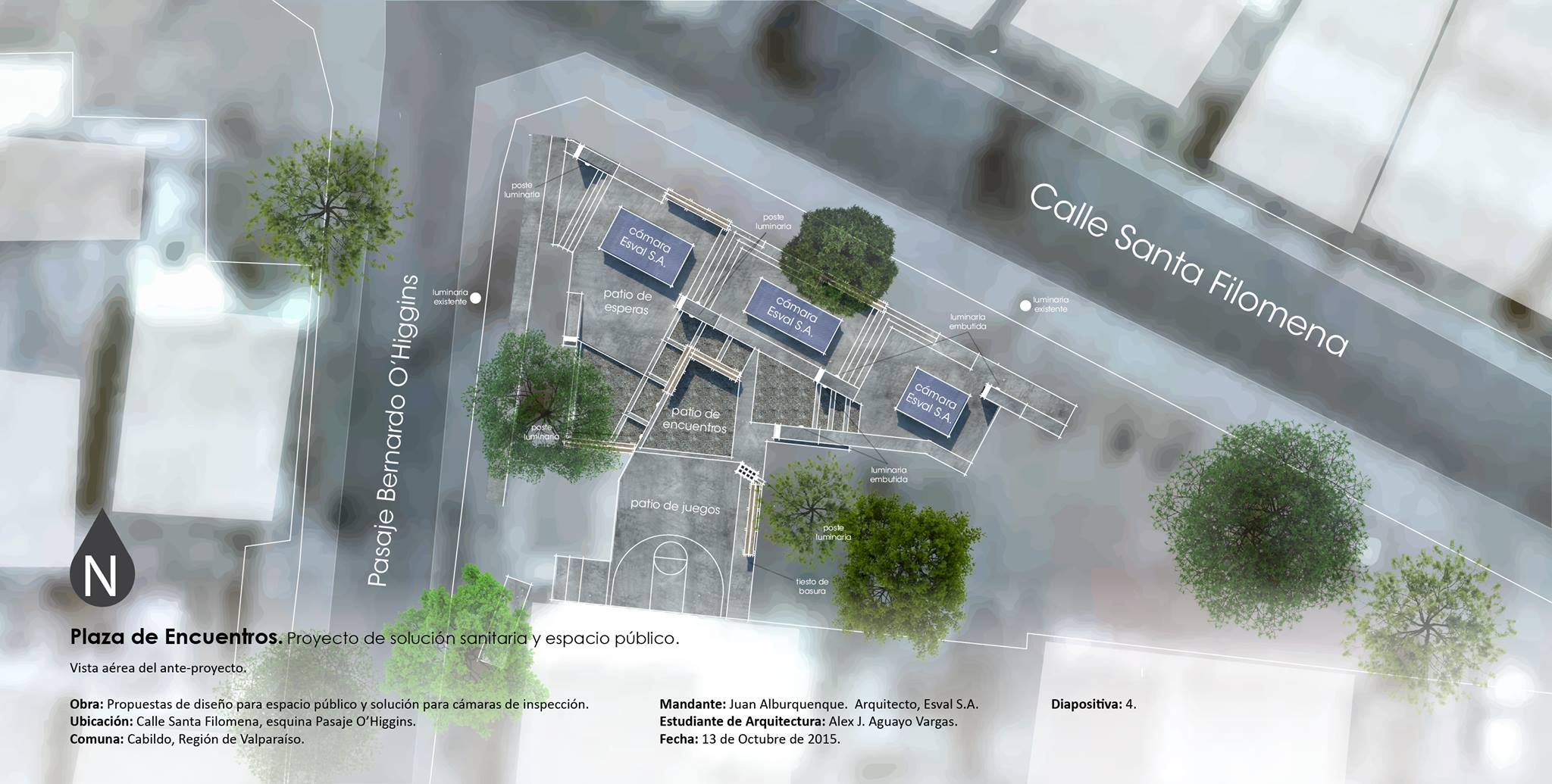 El Arquitecto Juan Alburquenque, a nombre del Departamento de Ingeniería de Esval S.A., nos solicita el partido inicial para el diseño de una Plaza Pública localizada en la Comuna de Cabildo, la cual contendría un sistema de bombas para aumentar presión de agua potable del sector.
