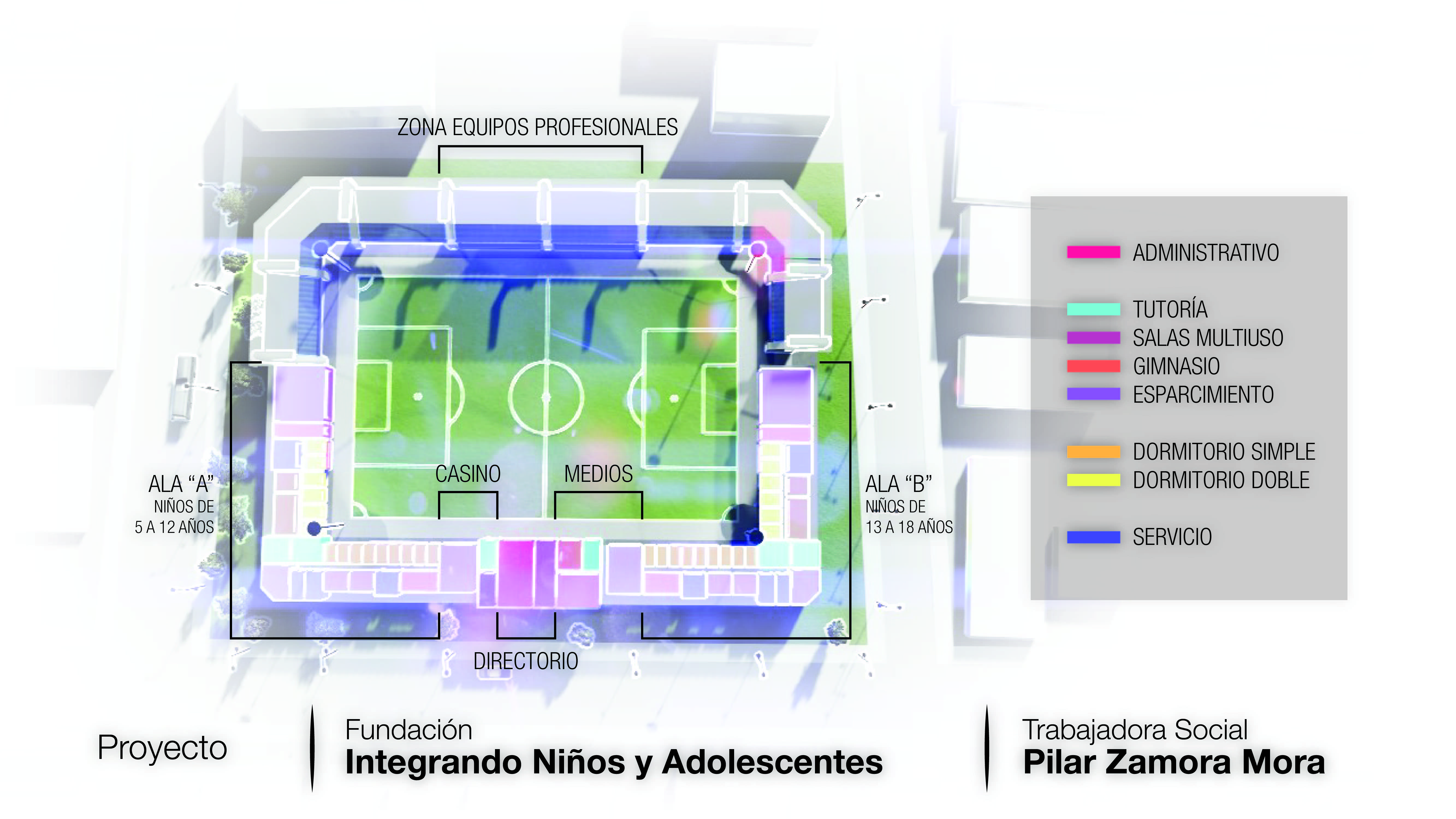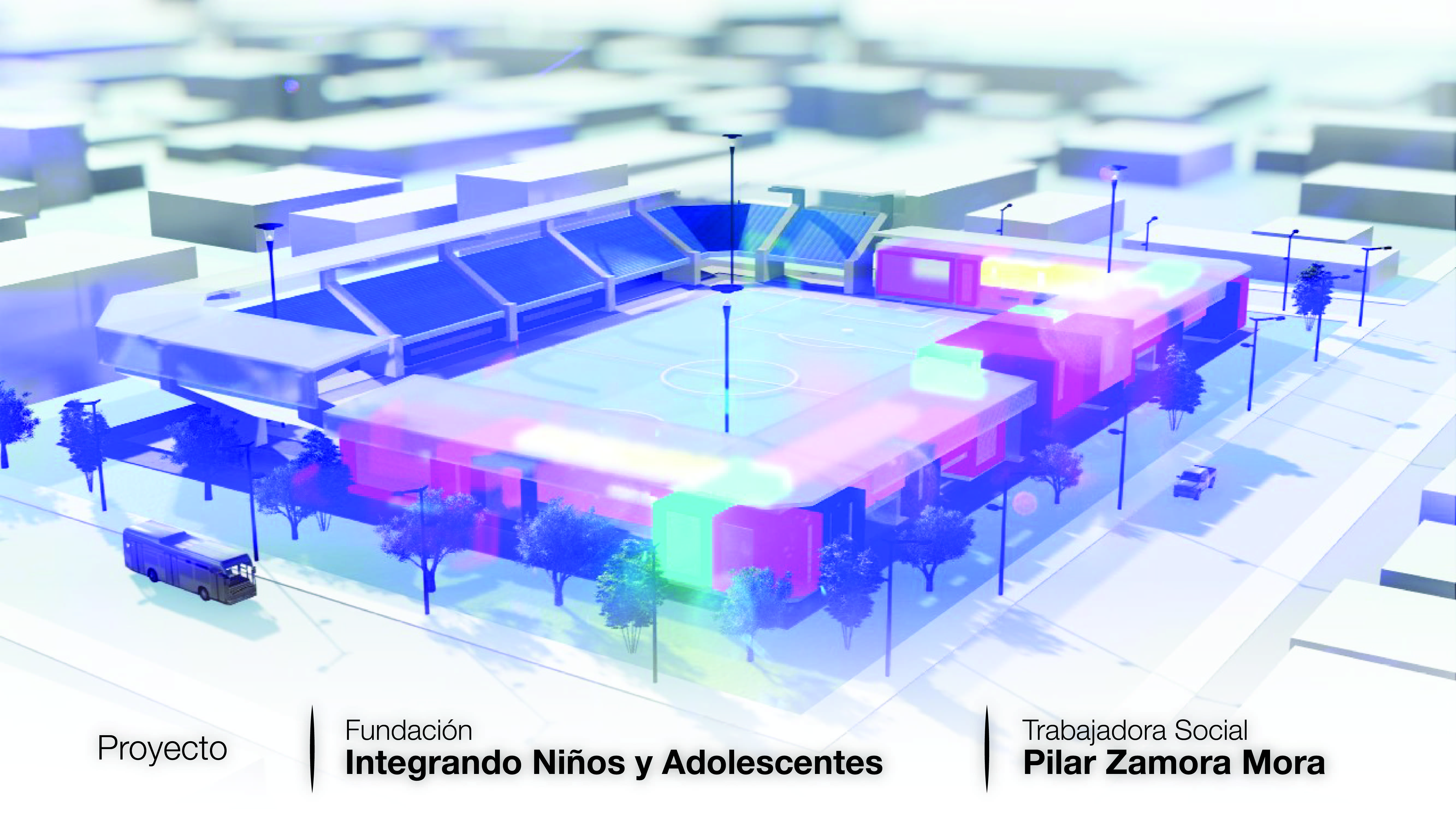 La Trabajadora Social Pilar Zamora Mora, nos encarga la realización de un modelo 3d, que exponga el partido inicial del proyecto de «Hogar-Escuela-Estadio» con propósitos sociales para niños y jóvenes en situación de riesgo.