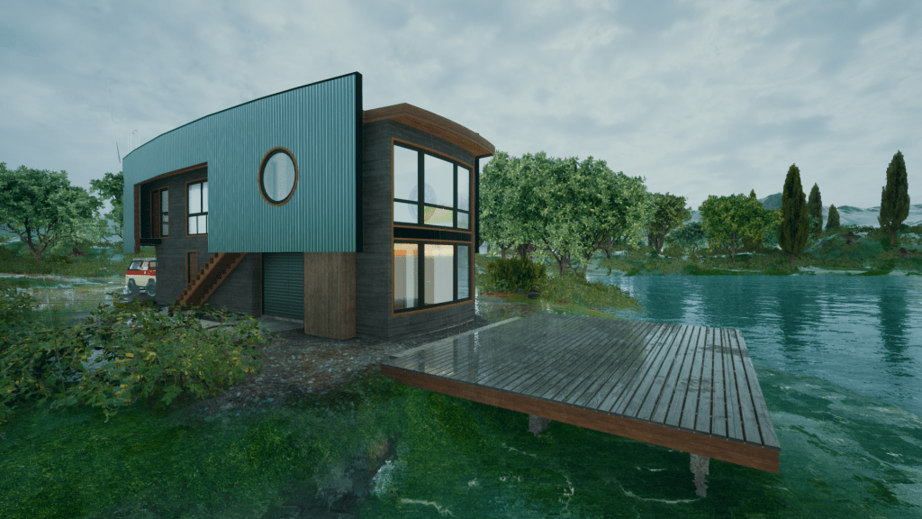 Se diseña Casa prototipo para familia de 3 o 4 personas, localizada en la región de Los Lagos, comuna de Dalcahue, Isla grande Chiloé. Modelo diseñado en dos plantas, conteniendo un nivel residencial (2°piso), y un nivel de servicio (1er piso), que comprende estacionamiento, taller y oficina estudio.