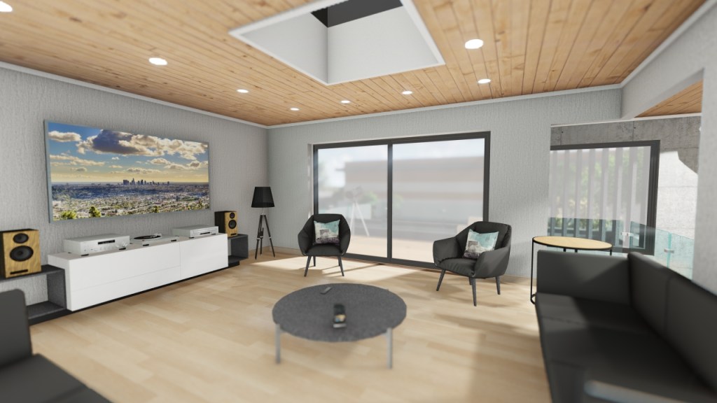 La edificación corresponde a un proyecto de vivienda unifamiliar, con recintos amplios y priorizando los planos abiertos e iluminados.