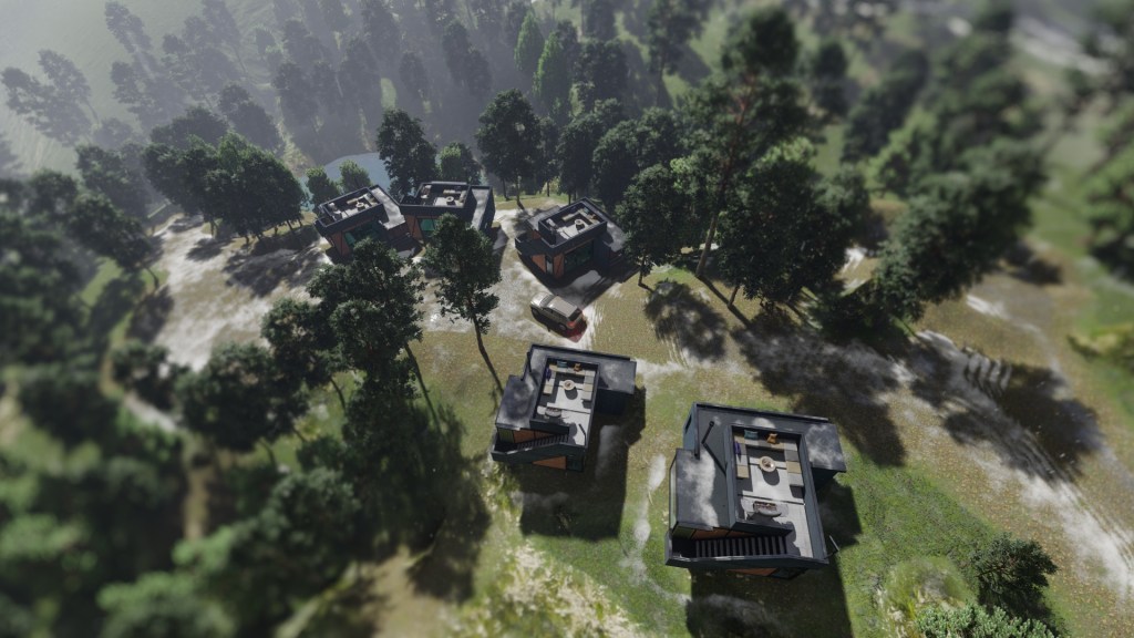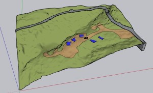 Luego se emplazan unidades de cabaña según localización del Plano Topográfico. Las imágenes a continuación son un acercamiento al futuro Plan Maestro del Proyecto.