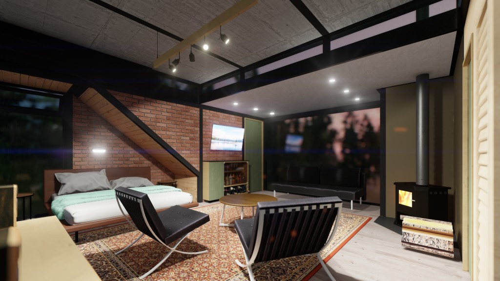 El proyecto se compone de un complejo de 5 unidades de cabaña tipo loft, más un espacio Club House, con piscina calefaccionada de interior. Los volúmenes se distribuyen en un Plan Maestro el cuál ordena los accesos peatonales, vehículares y accesibilidad universal correspondiente.